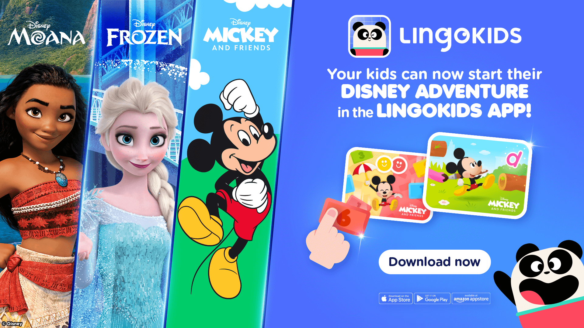 In 2025, I was tasked with creating the pitch decks and visual mockups that resulted in Disney's new exciting collaboration with the children's learning app Lingokids. My team and I explored several different design structures that Disney content might live inside the Lingokids app while still protecting and upholding Disney brand standards, which you can request to view here. I also gathered, organized and edited the Disney character assets that Lingokids are using for both gaming and marketing.